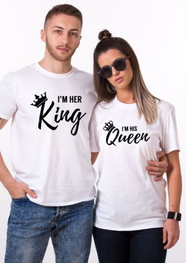 • Design: Bold black text with crown graphics – “I’m Her King” & “I’m His Queen
