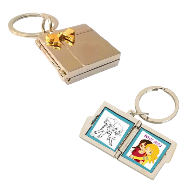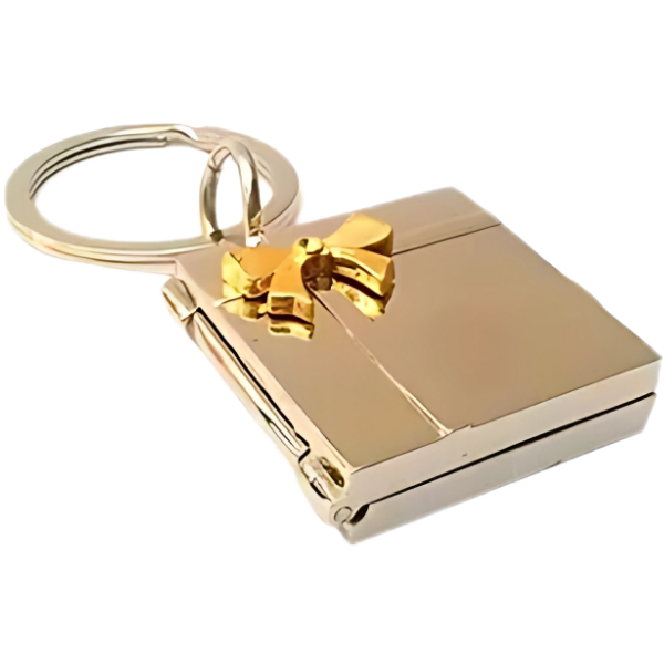 Elegant Box Metal Keychain with Golden Bow