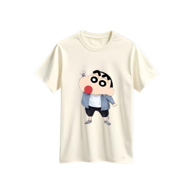 Beige Cartoon Print Polyester T-Shirt