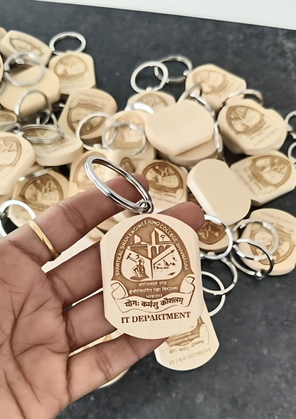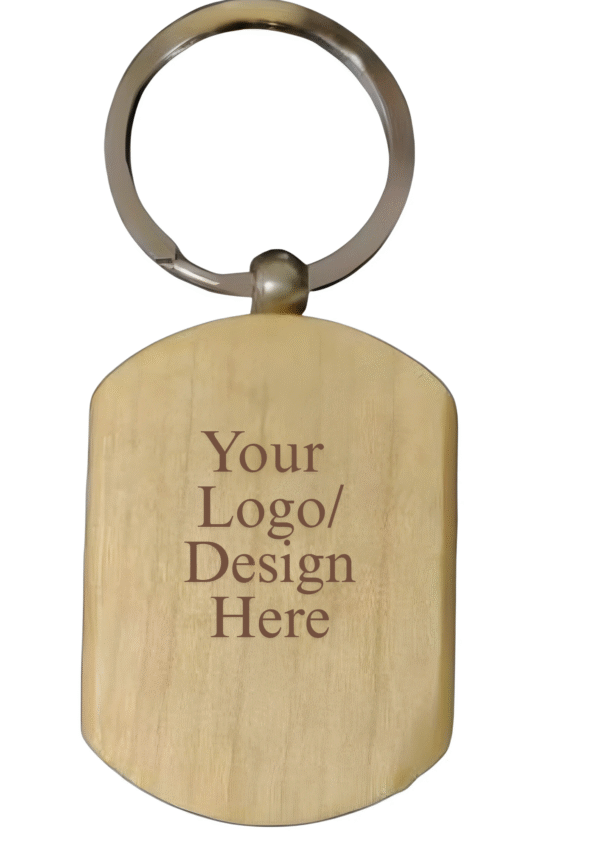 Carry something meaningful with you everywhere — this elegant golden wooden keychain is both stylish and personal. With your logo or design engraved on the face, it makes the perfect gift or keepsake.